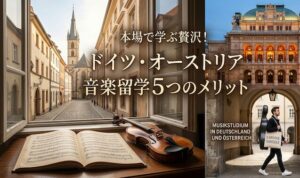 こんにちは。 これから音楽留学を考えているあなたへ。 「どうしてクラシックを学ぶなら ドイツやオーストリアなの?」 そんな素朴な疑問に、ウィーン国立音大卒で学んだ私の実体験を交えて、お答えします。 「日本で譜面を追いかけ […]