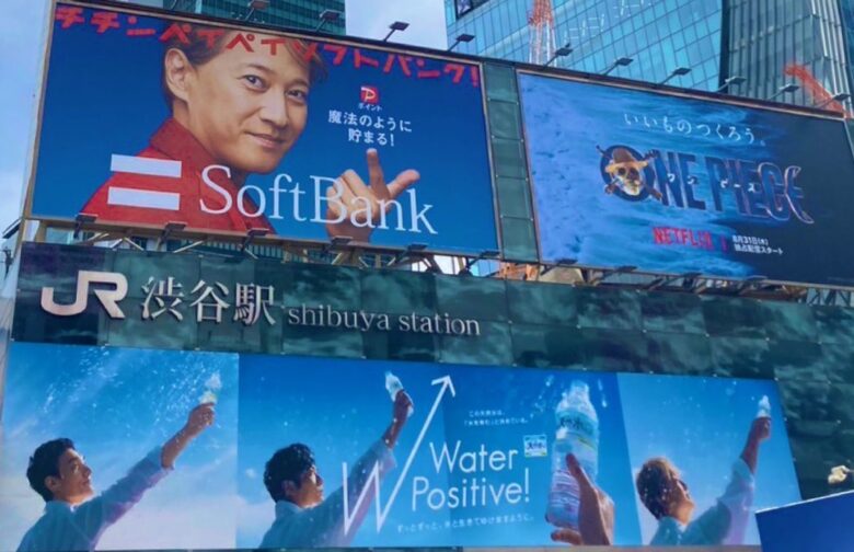こんにちは。 2023年9月、元SMAPの中居正広さんが4年ぶりにソフトバンクの新CMに起用され、JR渋谷駅に大ポスターが設置されましたが、なんとその下には「サントリー天然水…