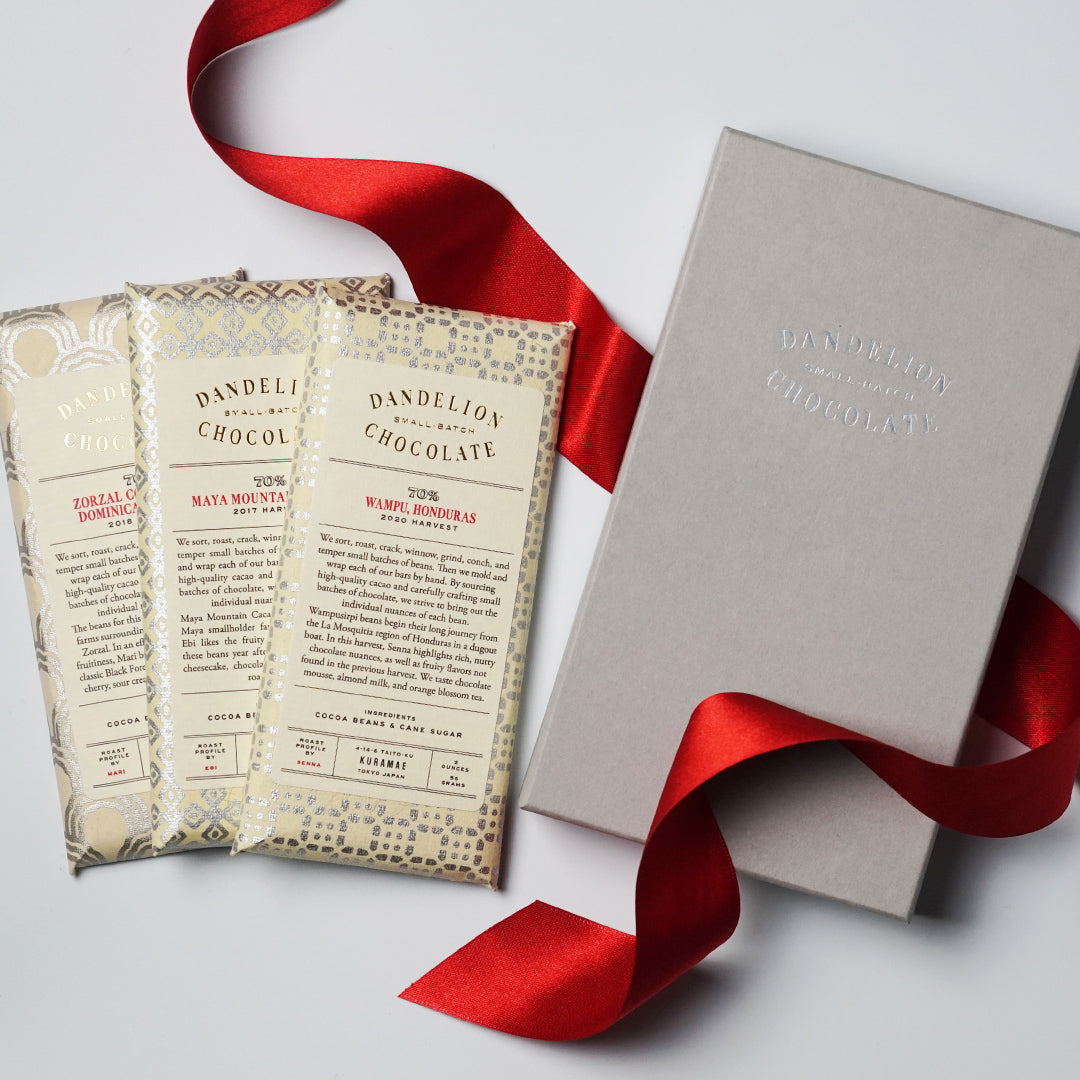 蔵前のファクトリーでつくられた3種類のチョコレートバーがパックされたパーフェクト・コレクション。 カカオ豆の含有率をすべて70%で揃え、豆の産地や個性による味わいや…